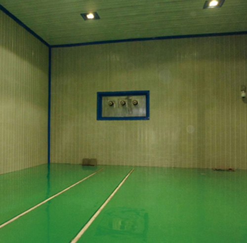 1.此處以鋼板焊接式電磁屏蔽室為例。包括六面龍骨框架、冷軋鋼板。龍骨框架由槽鋼、方管焊接而成,材料規(guī)格按屏蔽室大小確定地面龍骨(地梁)應(yīng)與地面進(jìn)行相對緣處理。墻、頂部冷軋鋼板厚度2mm,底部鋼板厚3mm,先在車間預(yù)制成模塊,分別焊接在龍骨框架內(nèi)側(cè)。所有焊接均采用CO2保護(hù)焊,連續(xù)滿焊,并用專用設(shè)備撿漏,防止漏波。所有鋼質(zhì)殼體必須進(jìn)行良好的防銹處理;